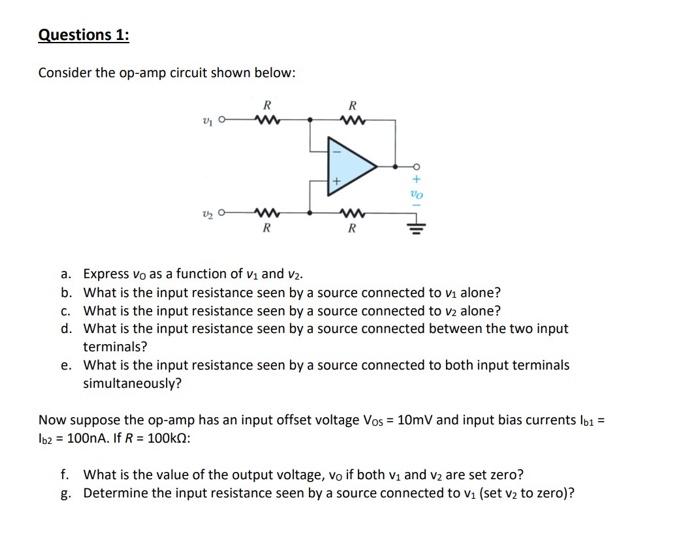 Solved Questions 1 Consider The Op Amp Circuit Shown Below Chegg Com